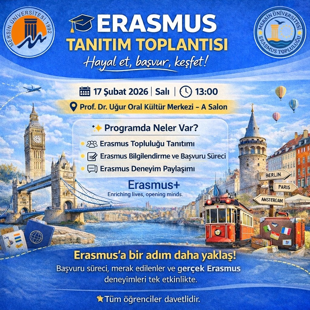 ERASMUS PROGRAMI STAJ HAREKETLİLİĞİÖĞRENİM HAREKETLİLİĞİ ve PERSONEL HAREKETLİLİĞİ için YABANCI DIL SINAVI YAPILACAKTIR.SINAV TARİHİ: 11 Mart 2026 SINAV SAATİ: 10.00 SINIF LİSTELERİ VE SINAV YERİ&