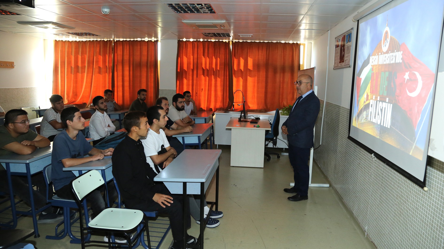 Programda konuşan Rektörümüz Prof. Dr. Erol Yaşar, Filistin’de yaşanan soykırımın insanlık için büyük bir sınav olduğunu dile getirerek ortaya çıkan görüntülerin herkesi derinden etkilediğini ifade etti. Filistin’de yaşanan bu insanlık dramına yönelik gerçekleştirilen farkındalık çalışmalarının önemine de vurgu yapan Üniversitemiz Rektörü Prof. Dr. Erol Yaşar, Filistinli öğrencilerimizle sık sık bir araya geldiklerini ve her zaman yanlarında olduklarını ifade ederek tüm öğrencilerimize yeni eğitim öğretim yılında başarılar diledi.